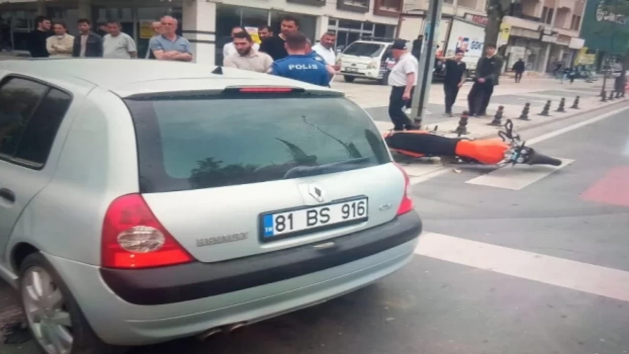 Düzce Merkez Bolu Caddesi üzerinde Berfin S. idaresindeki 81 BS 916 plakalı otomobil ile Rasim K. yönetimindeki 09 H 6339 plakalı motosikletle çarpıştı.