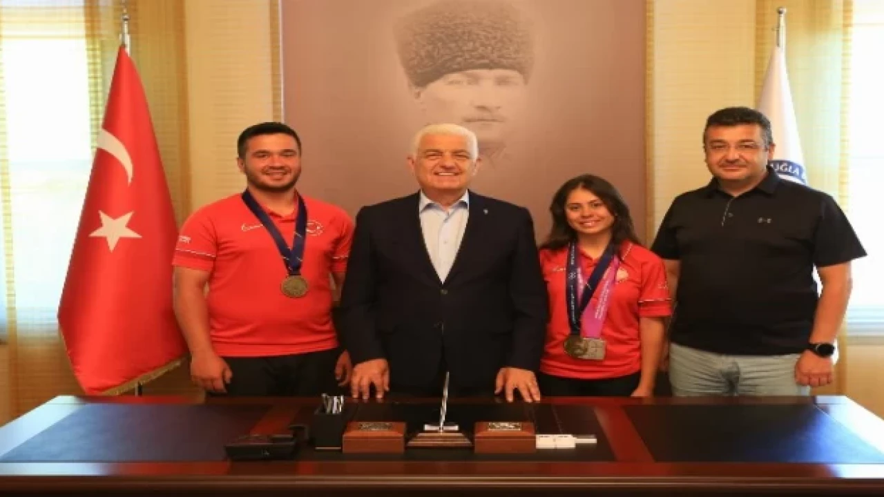 İrlanda'da düzenlenen 2023 Dünya Gençlik Şampiyonasında Dünya 2’ncisi olan Hazal Burun ve Polonya da gerçekleşen 3. Avrupa Oyunlarında Bireyselde Avrupa 3’üncüsü olan Emircan HaneyMuğla Büyükşehir Belediye Başkanı Dr. Osman Gürün’ü makamında ziyaret ettiler.