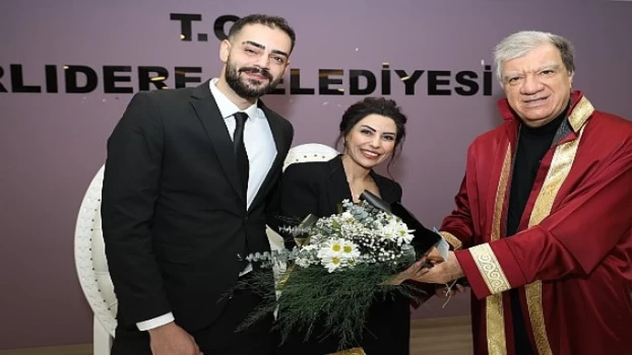 Narlıdere Belediye Başkanı Ali Engin, 14 Şubat Sevgililer Günü’nde dünya evine giren çiftlerin mutluluğuna ortak oldu. Narlıdere Belediyesi Atatürk Kültür Merkezi’nde yer alan nikâh salonunda evlilik tarihlerini unutulmaz kılmak isteyen çiftlerin nikâhlarını kıyan Başkan Engin, çiçeği burnunda çiftlere bir ömür boyu mutluluklar diledi.