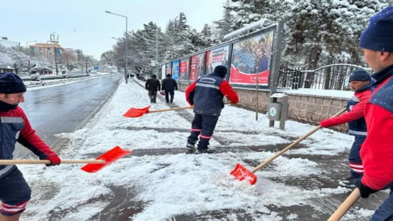 Fen İşleri Müdürlüğü, Temizlik İşleri Müdürlüğü, Park ve Bahçeler Müdürlüğü, Su Kanalizasyon Müdürlüğü ve Muhtarlık İşleri Müdürlüğü personellerinden oluşan karla mücadele ekipleri, yaya ve araç trafiği akışının güvenli bir şekilde sağlanması için kar küreme, tuzlama çalışması yapıyor.