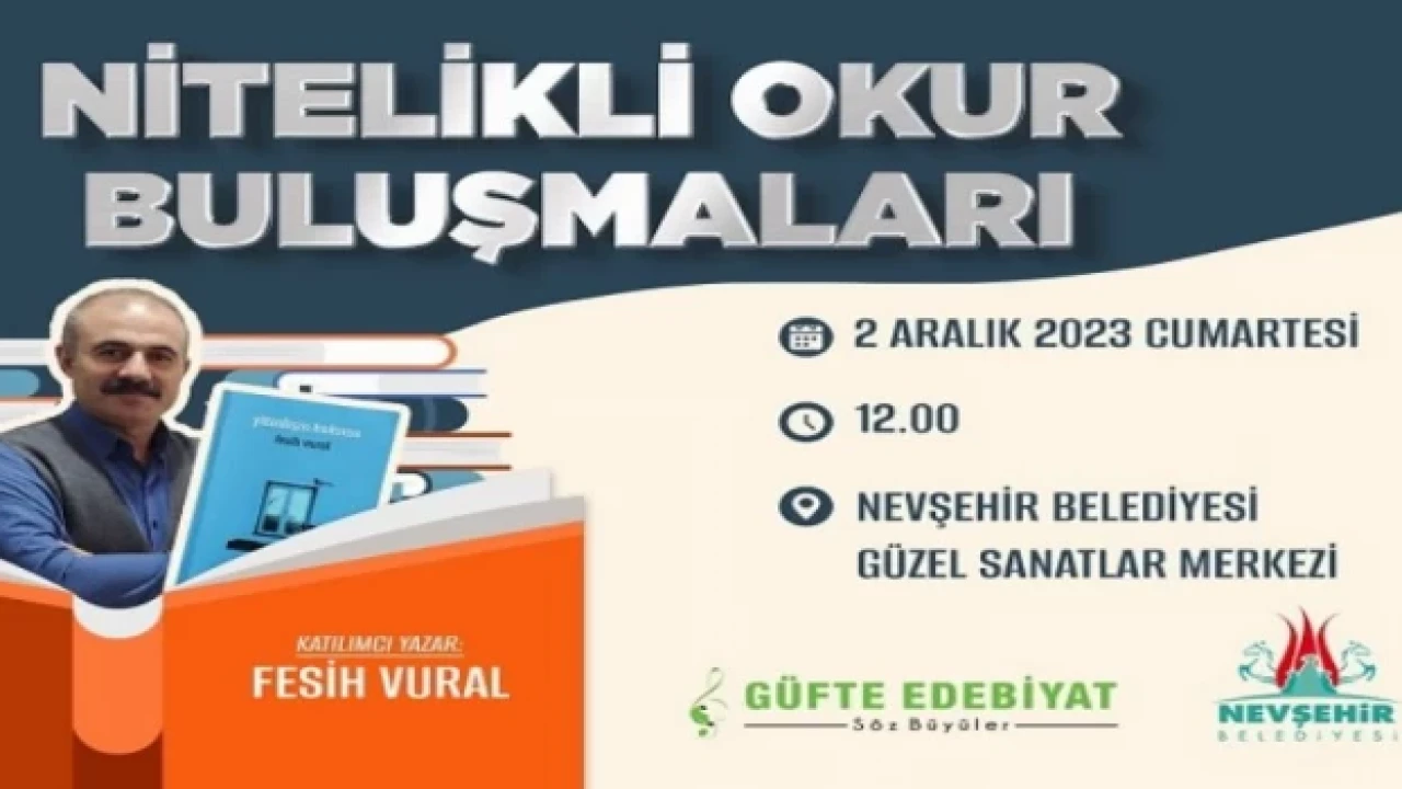 Nevşehir Belediyesi Güzel Sanatlar Merkezi’nde her ay farklı bir yazarın konuk olacağı ‘Nitelikli Okur Buluşmaları’ etkinliği başlıyor.