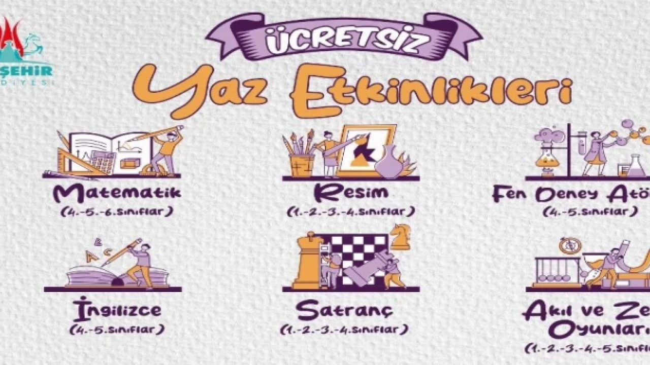 Mehmet UZEL (NEVŞEHİR İGFA) Nevşehir Belediyesi Gönüllü Eğitim Merkezi’nde 1, 2, 3, 4, 5 ve 6. sınıf öğrencilerinin yaz tatilini güzel ve verimli geçirebilmeleri için İngilizce, Fen Deney Atölyesi, Matematik, Satranç, Resim, Akıl ve Zeka Oyunları Kursları açılacak. Başvurular da çocukların bitirdiği sınıfların esas alınacağı ve sınırlı kontenjanlarla açılacak olan ücretsiz kurslar 3 Temmuz 2023 tarihinde başlayacak.