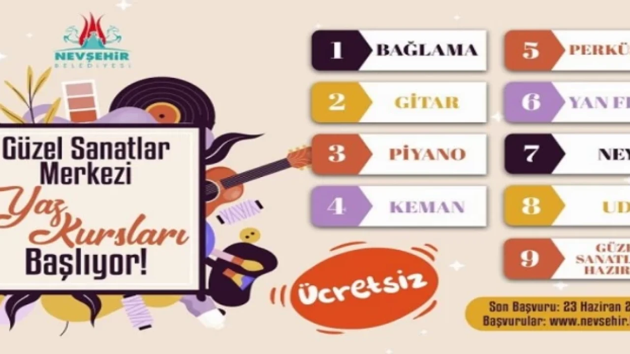Nevşehir’de çocukları ve gençleri sanatla buluşturan Nevşehir Belediyesi Güzel Sanatlar Merkezi’nde açılacak olan yaz dönemi kursları için kayıtlar başladı.
