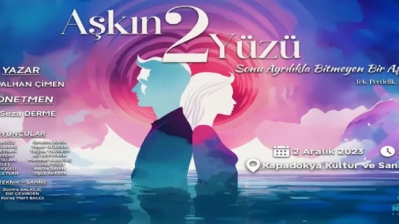 Nevşehir Belediyesi Şehir Tiyatrosu oyuncuları “Aşkın 2 Yüzü” adlı oyunu 2 Aralık 2023 Cumartesi günü sahneleyecek.