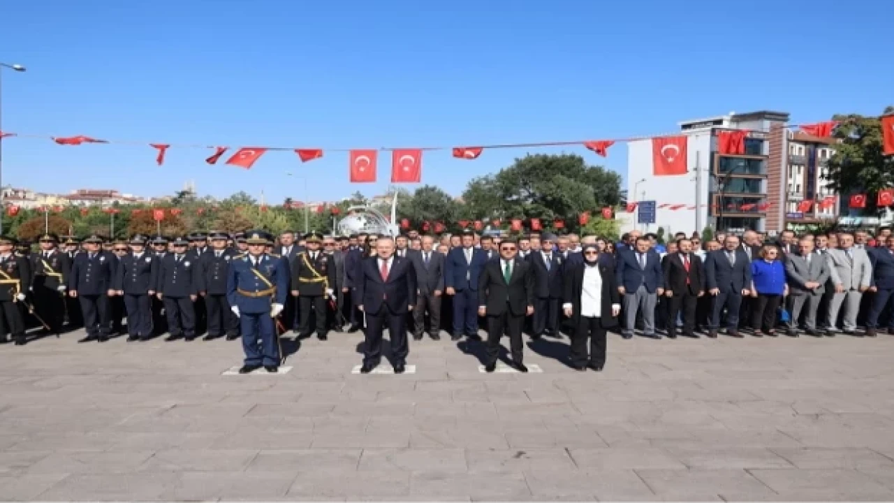 NEVŞEHİR (İGFA) - Nevşehir’de, 30 Ağustos Zafer Bayramı ve Türk Silahlı Kuvvetler Günü kutlama etkinlikleri, Nevşehir Valiliği önündeki Atatürk Anıtına Nevşehir Valisi Ali Fidan, Nevşehir Belediye Başkanı Rasim Arı ve Garnizon Komutanlığı adına Hava Mühendis Albay Hasan Şimşek, Atatürk Anıtına çelenk sunması ile başladı.