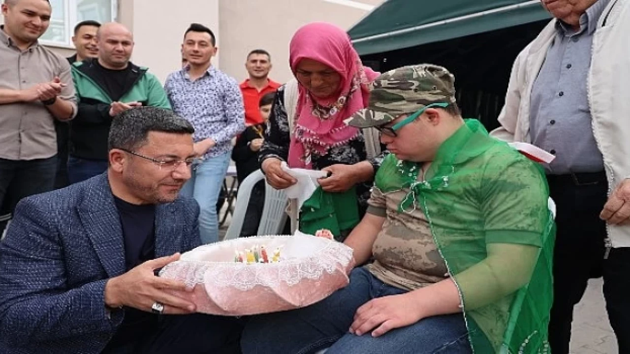 Tosun’u tebrik eden Başkan Arı, programa katılan çocuk ve gençlere de kına yakarak  sohbet etti. Programda çocuklara da çeşitli hediyeler dağıtan Arı, “Down Sendromu bir hastalık değil, genetik bir farklılıktır.