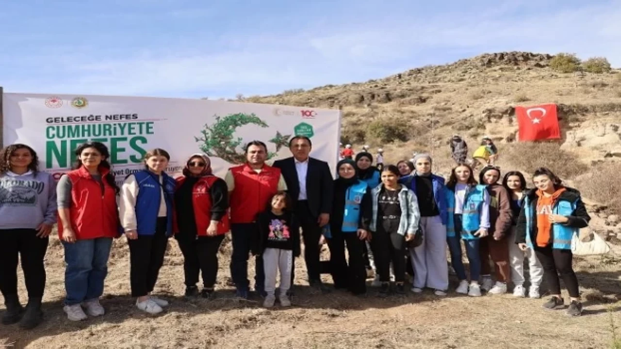Burada oluşturulan Cumhuriyet Ormanı’na protokol üyeleri vatandaşlarla birlikte 3 bin fidan dikti.