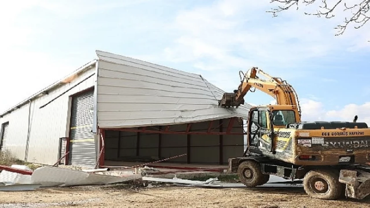 Ekipler daha sonra da biri bin 500 metrekarelik diğeri de 800 metrekarelik alana yapılmış iki ayrı işyerini daha yerle bir etti. Yıkımlar sırasında herhangi bir olumsuzluk yaşanmadı.