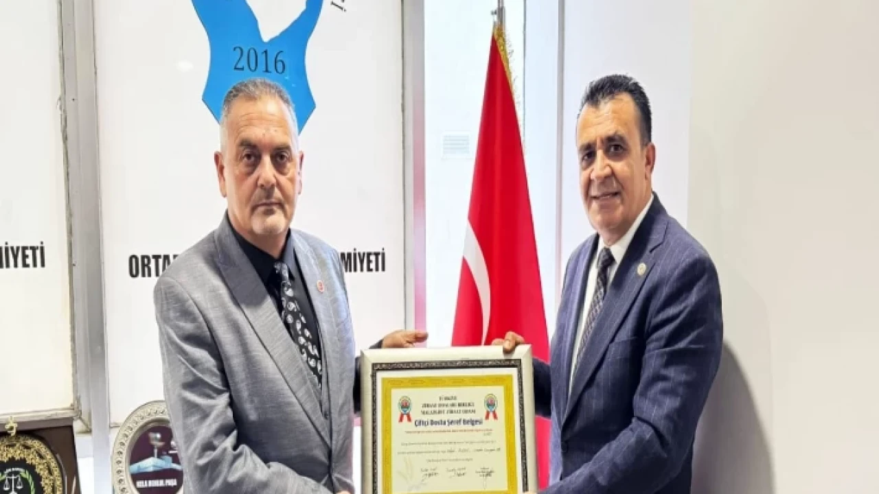 Günümüzde 4 bin 500 üyesi olan ve her geçen gün çiftçilerin yüzünü güldürecek çalışmalara imza atan MZOB Başkan Tahsin Kılıç, OGC Genel Başkanı Nihat Aydın’a ‘Çiftçi Dostu Şeref Belgesi’ takdim etti.
