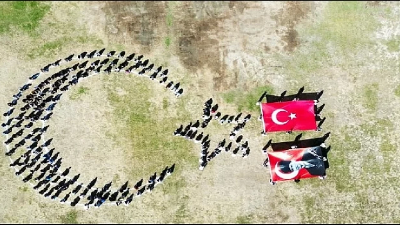 Atatürk’ün Cumhuriyet’i emanet ettiği gençler, Atatürk’e saygılarını ve Cumhuriyet’e sevgilerini göstermek amacıyla vücutlarıyla Hilal ve Ay Yıldız çizerek dev Atatürk ve Türk Bayrağı açtı.