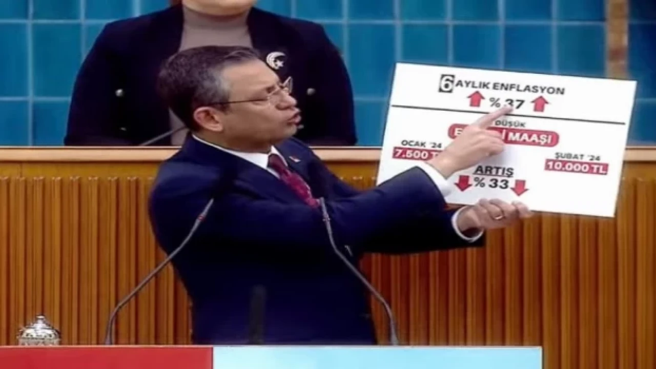 TÜİK'in verilerine dikkati çeken Özel, TÜİK'in belirlediği enflasyona göre emekliye, çalışana zam verileceğini belirteceğini belirterek, "TÜİK geçen sene için enflasyonu yüzde 64 olarak açıklamıştı. Dana, koyun, tavuk eti, zeytinyağı, patlıcan ve zeytine gelen fahiş zamlar karşısında gerçek enflasyonun hesaplandığında yüzde 127 olduğu gözleniyor. Bugün asgari ücret 17 bin lira. Tayyip Erdoğan'ın geldiği günkü oran korunsa 25 bin lira alacaktınız. Ama bugün onun verdiği zam 10 bin lira. Bu açlık ücretini, bu sefalet ücretini, bu yoksulluk ücretini, bu sizi manavın önünden geçemez, markete gidemez hale getiren bu ücreti kabul etmeyin. İlk talep bu hafta Grubumuzun Meclis'te komisyonda üzerinde duracağı ilk hedef, 17 bin liradır. En düşük emekli maaşı bir asgari ücret olana kadar mücadele edeceğiz. Buradan Devlet Bahçeli'ye de Erdoğan'a da sesleniyoruz. Ağzınıza bir dolamışsınız DEM, DEM, DEM, milletin derdi DEM değil zam, zam, zam." diye konuştu.