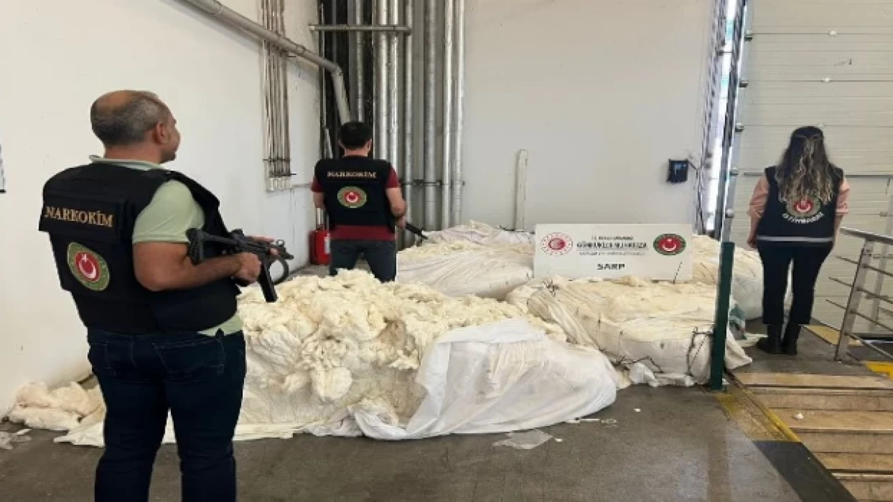 Gümrük Muhafaza birimlerince Sarp Gümrük Kapısı'nda gerçekleştirilen yakalamada, 1 ton ağırlığında pamuk yüküne emdirilmiş şekilde yurda sokulmaya çalışılan, piyasa değerinin yaklaşık 500 milyon TL civarında olduğu tahmin edilen uyuşturucu madde ele geçirildi.