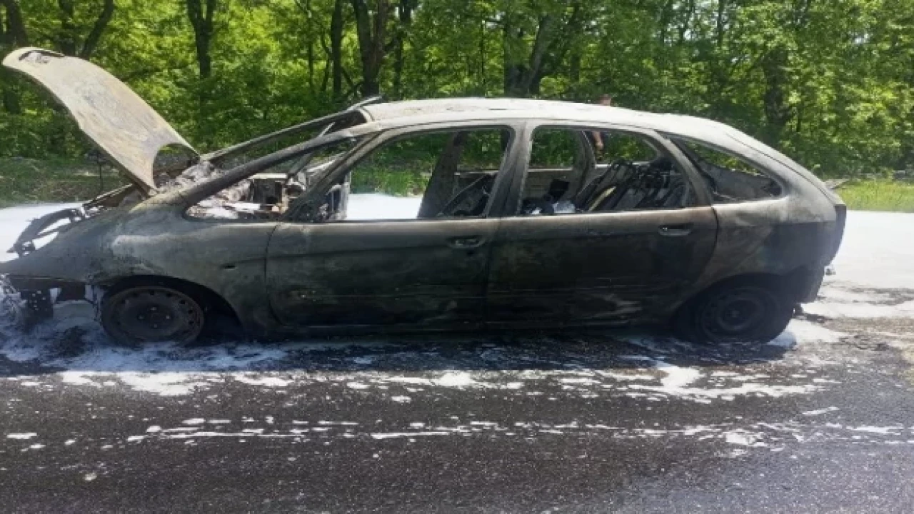 Yangın ekiplerin çalışmasıyla söndürülürken, yanan araç tamamen kullanılmaz hale geldi.