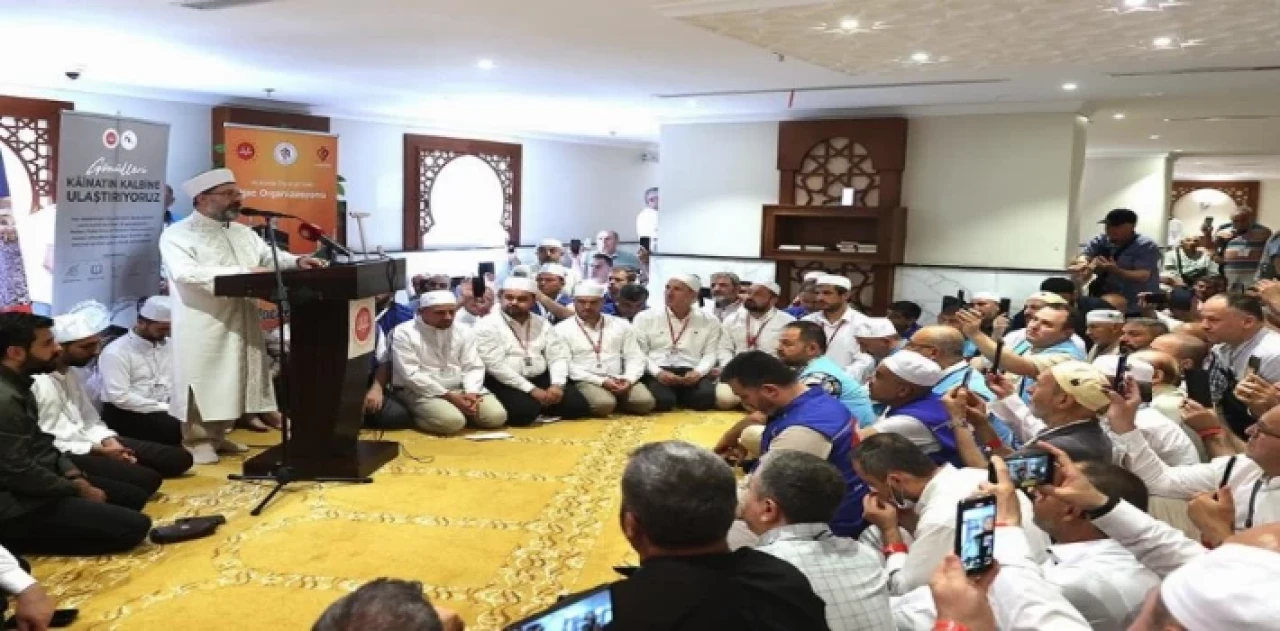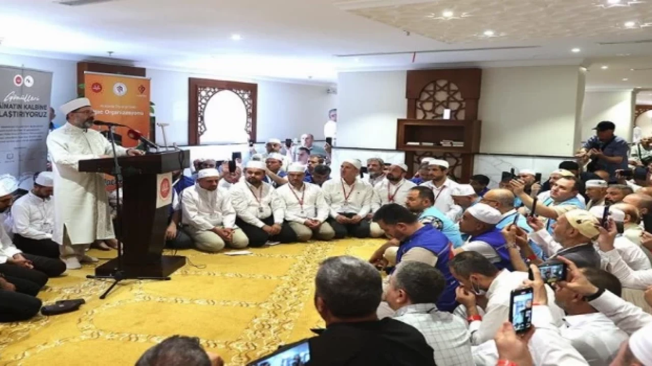 Haccın Müslümanların birlik, beraberlik içerisinde olması gerektiğini en güzel şekilde sembolize eden bir ibadet olduğunu dile getiren Başkan Erbaş, “Tavafa bakınız, sağınıza solunuza bakıyorsunuz hep farklı dillerde ve renklerde dua eden binlerce insan ama hepimizin yönü Kabe ve tavaf yaparken kalbimiz Kabe’den yana. O, kalbimiz Kabe’de Allah için atıyor demektir.” diye konuştu.