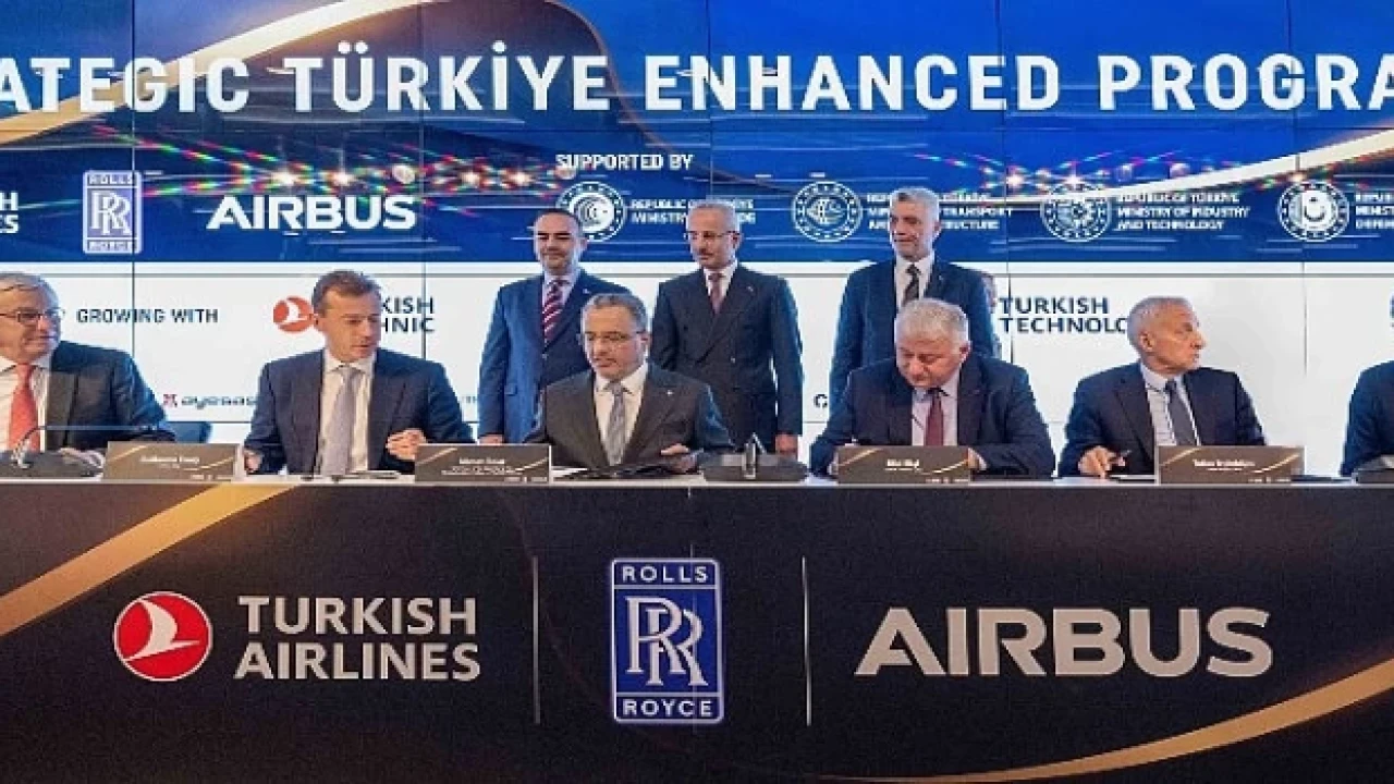Rolls-Royce CEO'su Tufan Erginbilgiç ve Türk Hava Yolları Yönetim Kurulu ve İcra Komitesi Başkanı Prof. Dr. Ahmet Bolat, İstanbul'daki Türk Hava Yolları Genel Merkezi'nde düzenlenen törende ortak bir bildiri imzaladılar.