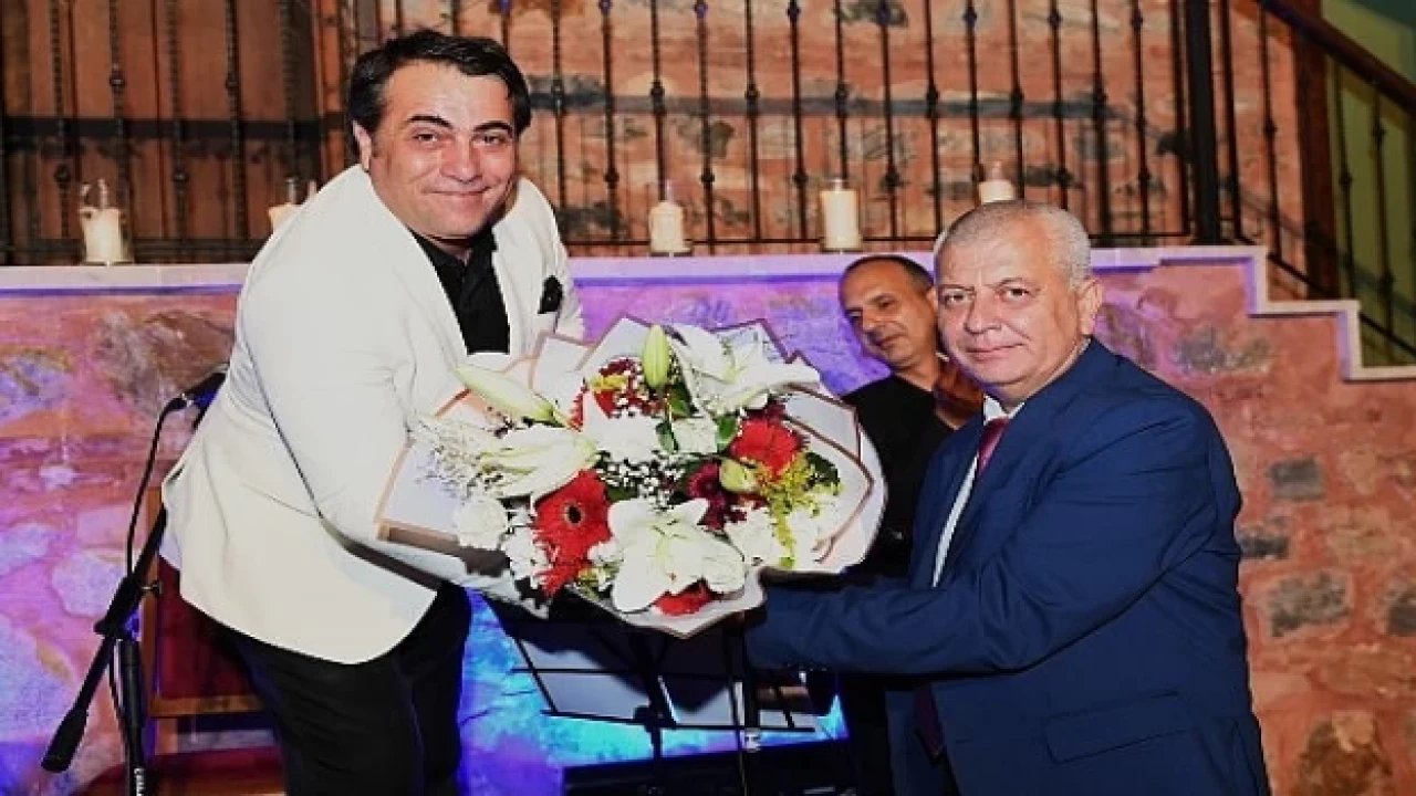 Program sonunda Osmangazi Belediye Başkan Yardımcısı Mutlu Esendemir, Sanatçı Hanende Salih Taşkın’a gecenin anısına çiçek takdim etti.