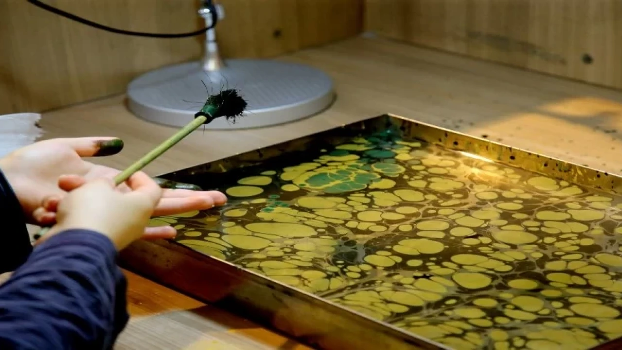 Hünerli ellerin, yeteneklerinin ön plana çıktığı Geleneksel Sanatlar atölyesinde ilk iki hafta çini sanatı işlenirken bu hafta ebru sanatının incelikleri işlendi.