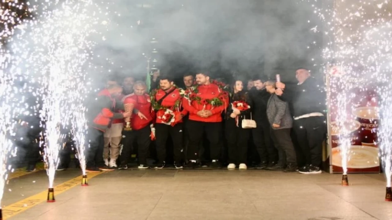 Avrupa Şampiyonası’ndan üstün başarılarla dönen milli güreşçileri Esenboğa Havalimanı’nda kulüp yöneticileri, antrenörleri, çalışma arkadaşları ve vatandaşlar karşıladı.
