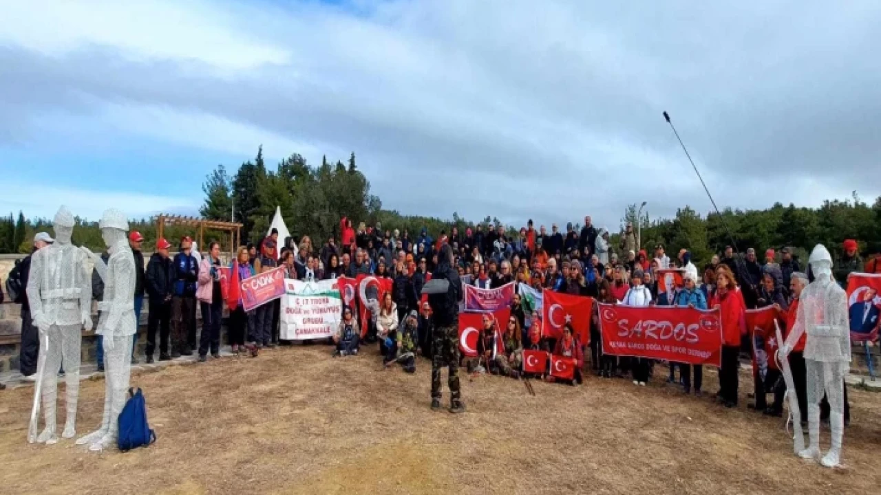 "Bigalı köyünden geçerken Mehmetçiğin Çanakkale Savaşları zamanında yıkandığı tarihi hamam kalıntısını ve su kaynakları olan tarihi kuyuyu da görmek mümkün" diyen SARDOS'lu üyeler, "Yaklaşık 1,5 kilometre asfalt yoldan yürüdükten sonra tekrar arazi yoluna girilerek Matik dereye iniliyor. İki kilometre kadar zorlu tırmanıştan sonra Kocaçimen tepeye çıkılıyor ve sizi muhteşem görüntüsü ile Suvla koyu, tuz gölü ve Semadirek adası selamlıyor. Yakın zamanda çıkan orman yangınında Büyükanafartalar köyünden itibaren Anzak koyuna kadar yanan bölgeleri görmek insanın yüreğini burktuğu gibi, atalarımızın emanetine bir ihanet abidesi gibi kararmış ağaçların arasından hüzünlü yürüyüş devam ediyor. Conkbayırında verdiğimiz öğle yemeğinden sonra iki kişinin bile yan yana yürümekte zorlanacağı savaş zamanından kalan gerçek siperlerin içinden devam eden rotadan Kocadere köyüne çıktık. Buradan sonra yaklaşık 4 km. daha devam eden rota yine başladığı nokta olan Bigalı köyünde bitiyor. Zorlu fakat bir o kadar da keyifli olan bu rotada böyle özel bir günde yürümenin onur ve gururunu yaşadık" diye konuştu.