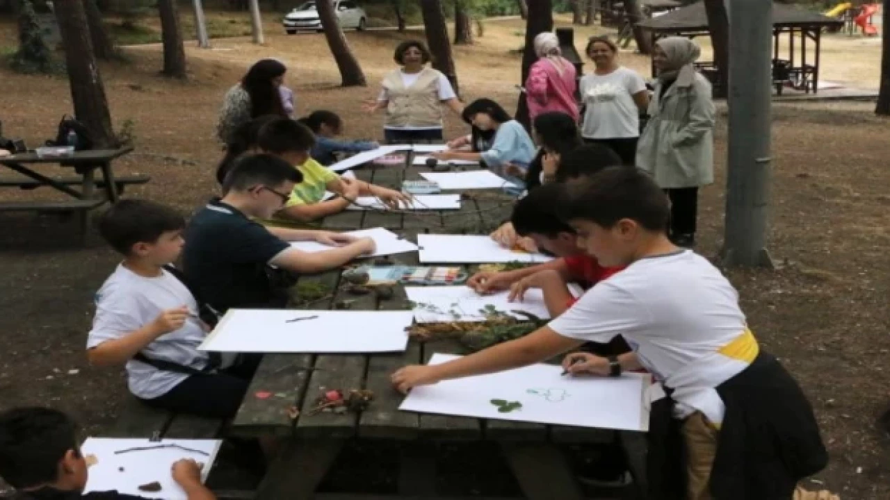 Doğa ile baş başa vakit geçiren öğrenciler kozalak, çam, dal gibi ormanda buldukları ürünlerini toplayarak tablo yaptılar. Resimler çizen öğrenciler, oyunlar oynayıp ‘çevre’ temalı aktiviteler sayesinde bilinç kazandı.