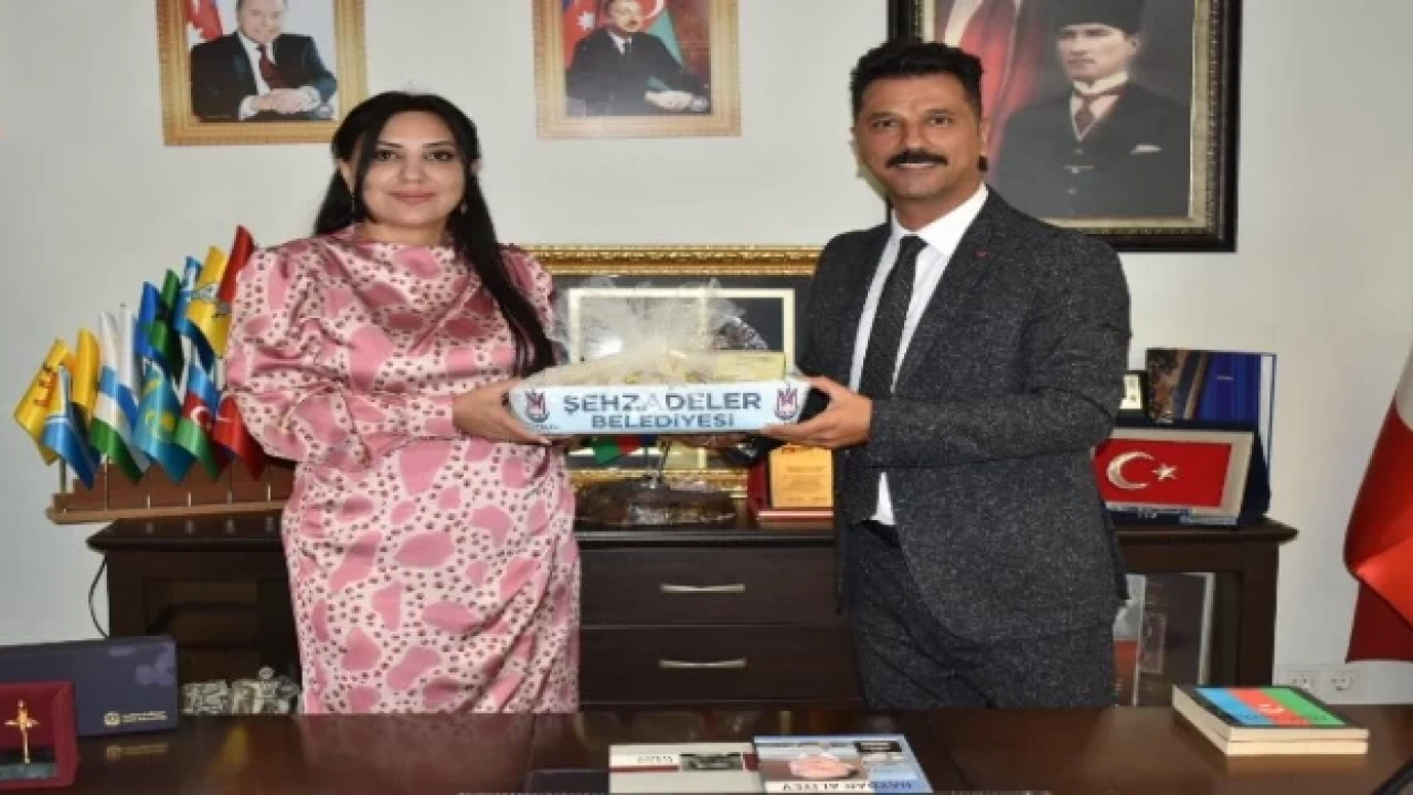 MANİSA (İGFA) - Manisa Azerbaycan Kültür ve Dayanışma Derneği Başkanı Şentürk Hoşgül ve yönetim kurulu üyelerini  Şirvan Vali Yardımcısı Aynur Ferzaliyeva, Şirvan Belediye Başkanı Kürdoğlu Muradov, İstanbul Başkonsolosluğu Konsolos Yardımcısı Sevinç Süleymanova, Vali Asistanı İsa Namazov ve Ceyhun Necefov ziyaret etti. Ziyarette Manisa Azerbaycan Kültür ve Dayanışma Derneği Başkanı Şentürk Hoşgül  dernek çalışmaları hakkında bilgiler verdi.