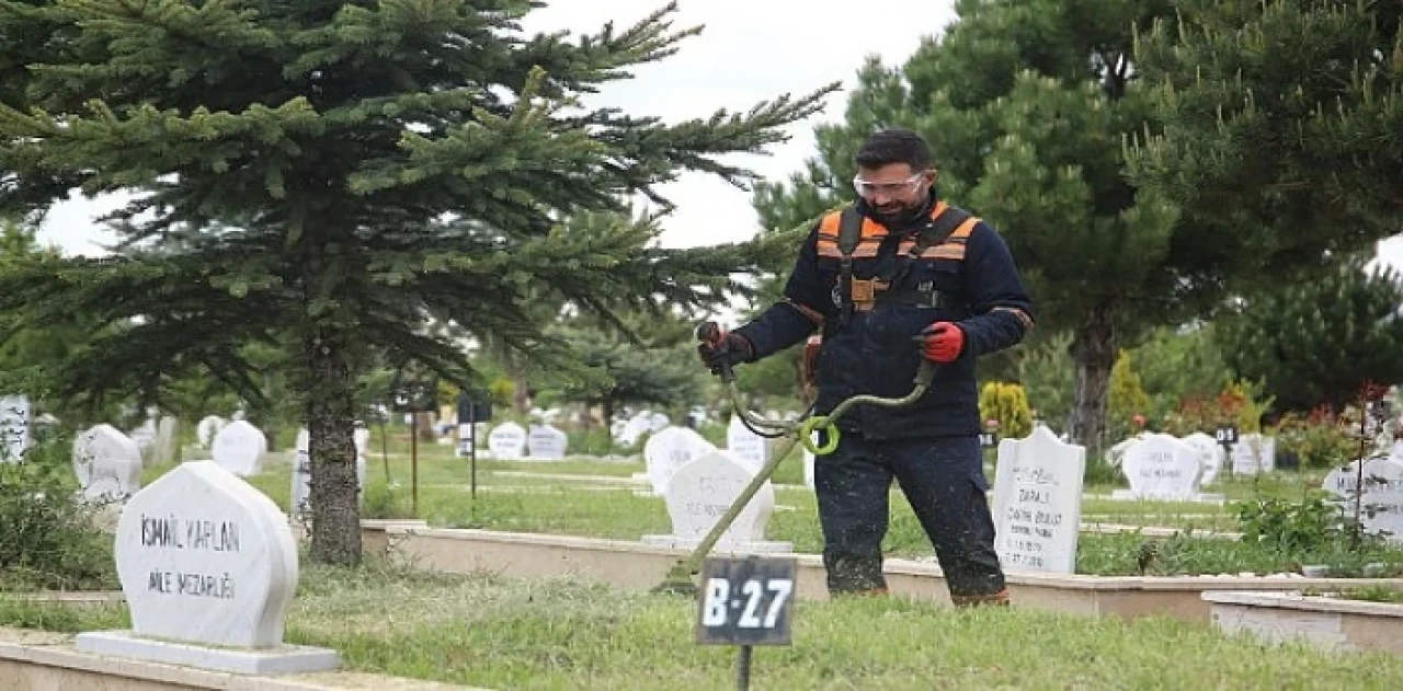 Vatandaşların rahat ve huzurlu bir şekilde kabir ziyareti yapmaları için kapsamlı bir temizlik çalışması başlatan ekipler, bahar aylarındaki yağışlarla birlikte uzayan otların biçimini yaparak gerekli yerlerde bakım-onarım ve çevre düzenlemesi gerçekleştiriyor.