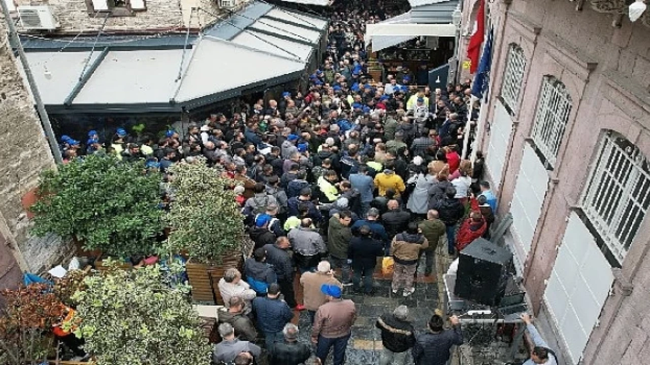 İzmir Büyükşehir Belediye Başkanı Tunç Soyer’e 9 Eylül İzmir’in kurtuluşunun 100’üncü yılı kutlamalarındaki konuşmasından dolayı İçişleri Bakanlığı tarafından açılan soruşturmaya, bir tepki de Belediye İş Sendikası’nın İzmir şubelerinden geldi. Egemenlik Evi önünde toplanan binlerce işçi, “Hak, hukuk, adalet”, “Tunç Başkan nerede biz oradayız”, “İzmir Tunç’tur, Tunç kalacak”, “Dik dur eğilme bu millet seninle”, “Aşkla İzmir Tunç’la İzmir” sloganları attı. Ankara’da olan ve uçağı rötar yaptığı için buluşmaya katılamayan Başkan Soyer, canlı bağlantı ile işçilere seslendi.