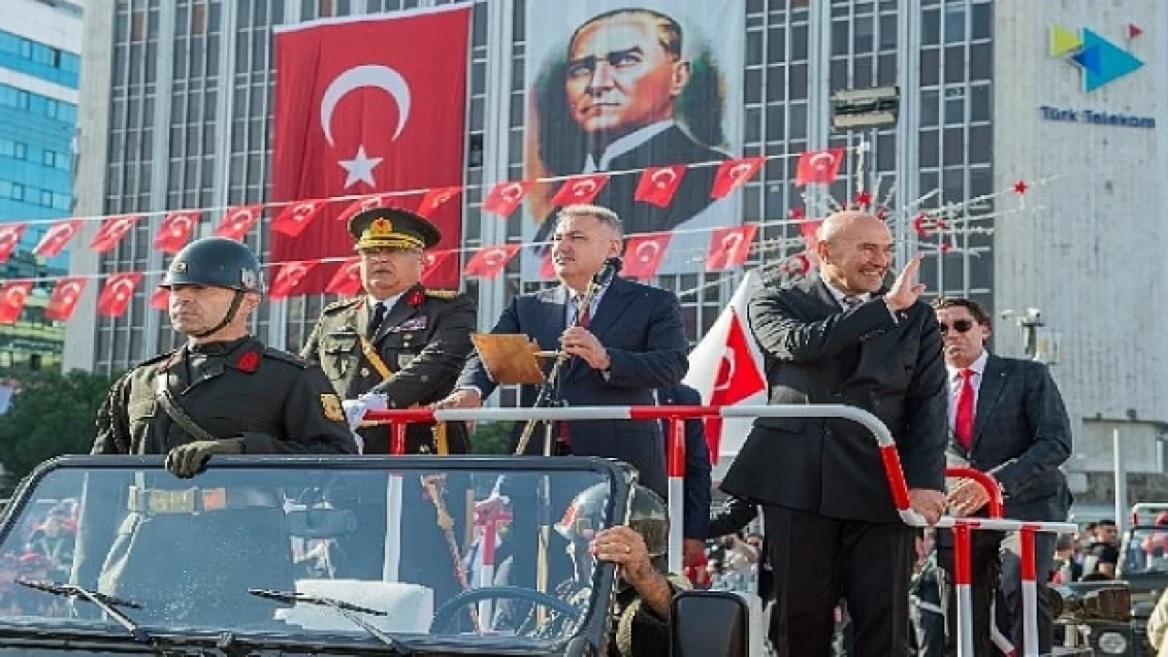 Konuşmaların ardından Cumhuriyet Meydanı’nda resmi geçit törenleri başladı. Vali Elban, Başkan Soyer ve Orgeneral Yeni, resmi geçidi ayakta selamladı. Törende, Türk Silahlı Kuvvetleri’nin kara, deniz ve hava birliklerinden Türk Polis Teşkilatı’na, İzmir Büyükşehir Belediyesi ekiplerinden oda ve meslek kuruluşlarına, okullardan barolara, kooperatiflerden derneklere resmi geçide katılarak Cumhuriyetin 100. yılını selamladı.