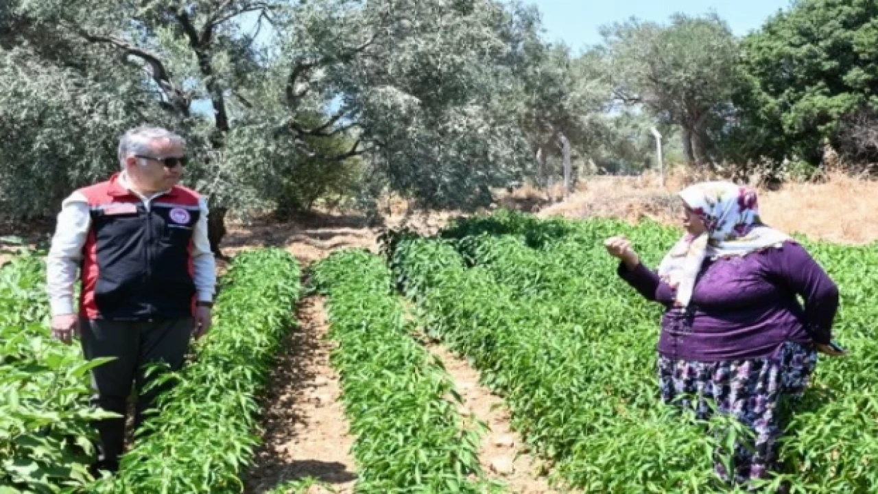 İZMİR (İGFA) - Proje kapsamında Torbalı’nın Karaot Mahallesi'nde domates, biber ve patlıcan üretimini geliştirmek amacıyla üretici Hatice Soytürk'e 1600 adet fide ve 4 kg bamya tohumu verildi. İl Tarım ve Orman Müdürü Mustafa Şahin, 2 dekar alanda üretim yapan Hatice Soytürk'ün tarlasını ziyaret ederek incelemelerde bulundu. Şahin’e, Bitkisel Üretim ve Bitki Sağlığı Şube Müdürü Engin Altunoğlu, Torbalı İlçe Tarım ve Orman Müdürü Gökhan Aktaş ve kurum personeli de eşlik etti.