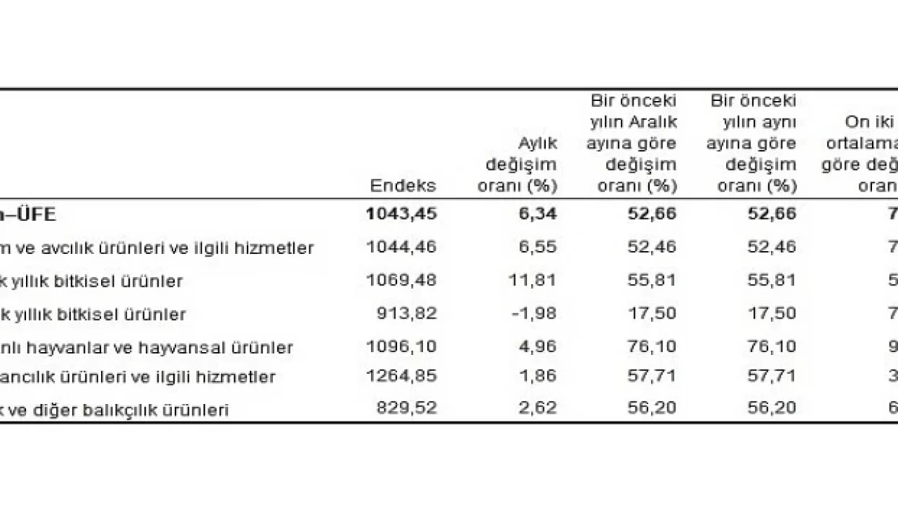 Muhalif. HABERLER Tarım ürünleri üretici fiyat endeksi (Tarım-ÜFE) yıllık yüzde 52,66, aylık yüzde 6,34 arttı