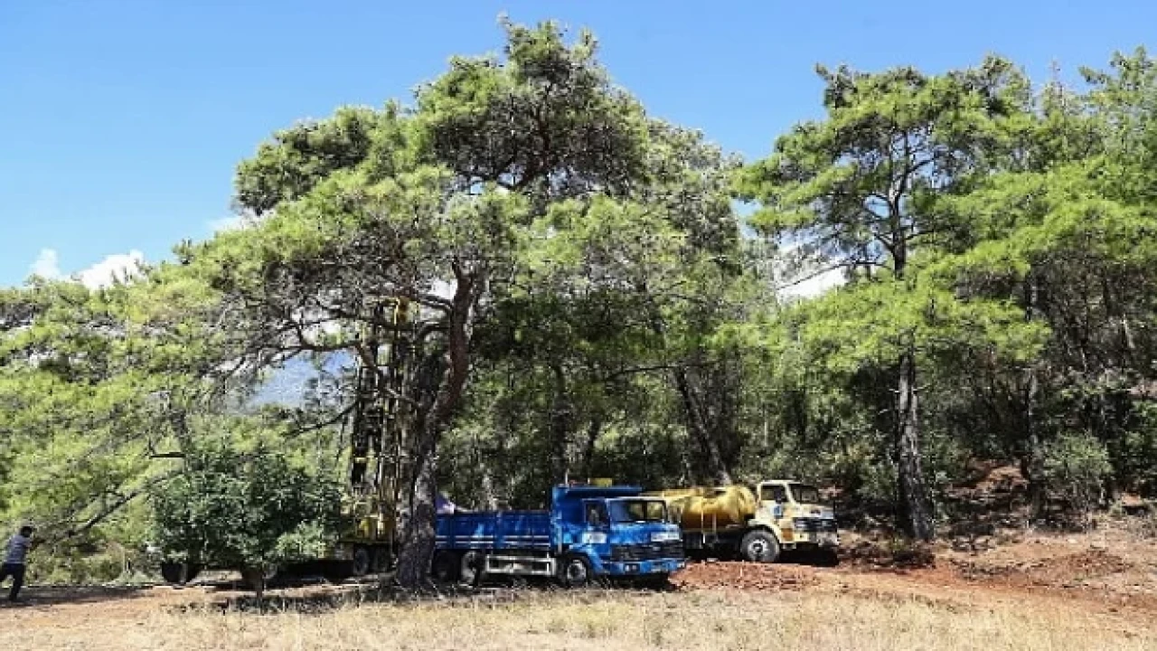 Antalya Büyükşehir Belediyesi ASAT Genel Müdürlüğü, kurak geçen yaz aylarında içme suyu sıkıntısının yaşandığı Kemer ilçesine bağlı Tekirova Mahallesi'nde sondaj çalışmaları gerçekleştiriyor.