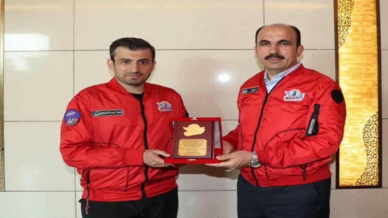 KONYA (İGFA) - 6 Şubat tarihinde gerçekleşen ve 11 şehri etkileyen deprem felaketinin ardından afet bölgesindeki örnek çalışmalarından dolayı Başkan Altay’a teşekkür plaketini TEKNOFEST Yönetim Kurulu Başkanı ve Baykar Yönetim Kurulu Başkanı Selçuk Bayraktar verdi.