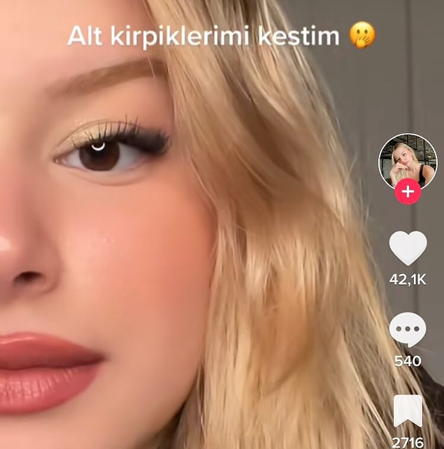 @hamsterr_954 kullanıcı adı ile paylaşım yapan ve güzellik trendlerini takip eden Esma isimli genç kadının videosuyla alt kirpikleri kesme akımı tekrar gündeme geldi.