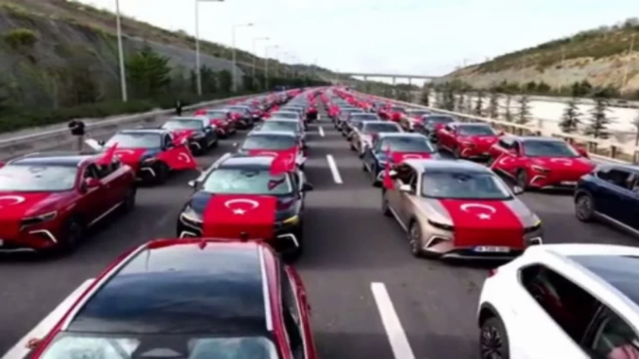Togg kullanıcıları, Yavuz Sultan Selim Köprüsü'ndeki konvoyla 29 Ekim Cumhuriyet Bayramı'nı kutluyor.