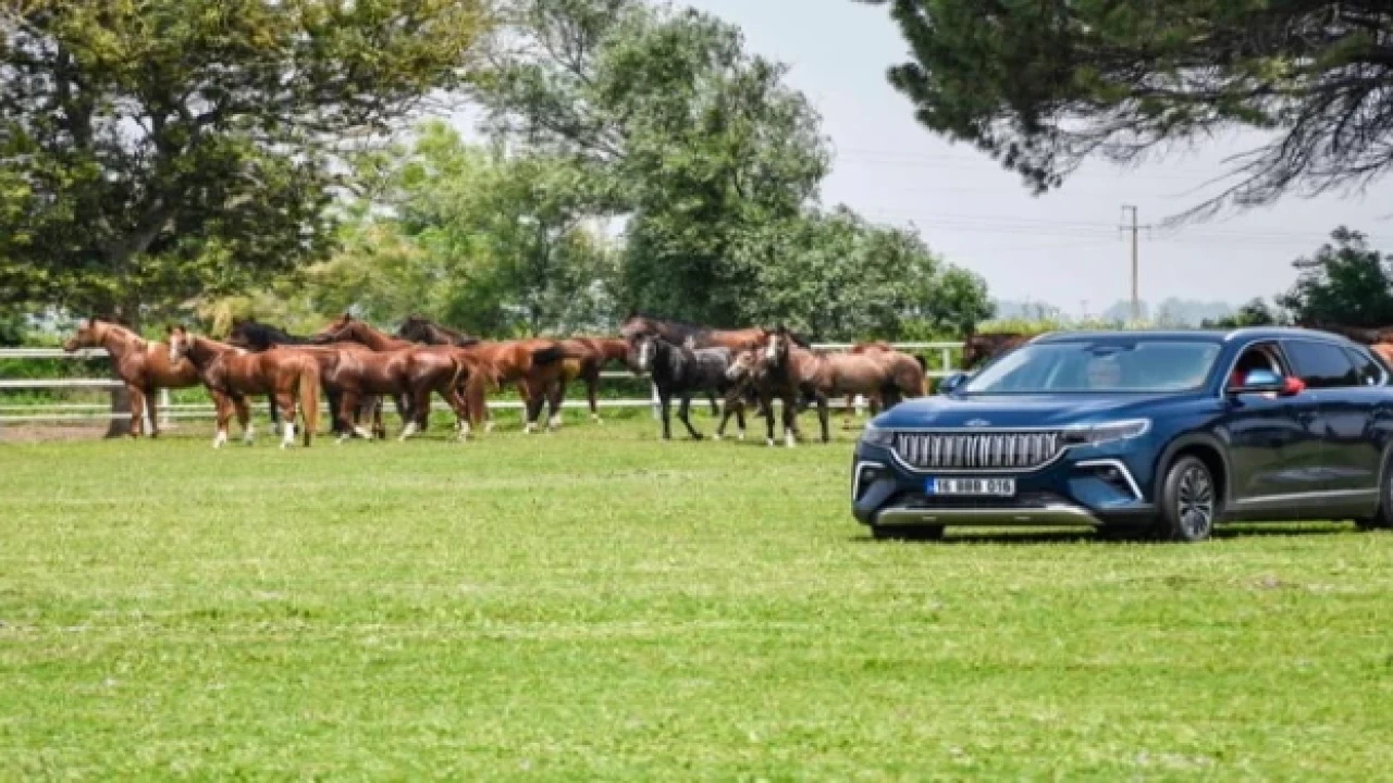 Türkiye’nin yerli ve milli otomobili TOGG, yetiştirdiği yarış atlarıyla dünyaca ünlü olan TİGEM’in Karacabey Harası’ndaki şampiyon atlarıyla yarıştı.
