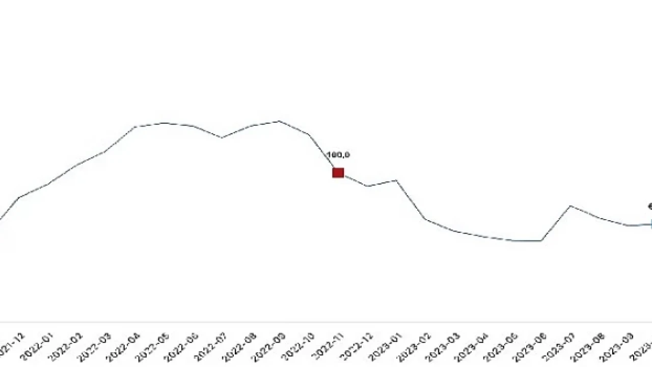Sanayi, inşaat, ticaret ve hizmet sektörleri toplamında ciro endeksi (2015=100), 2023 yılı Kasım ayında yıllık %66,1 arttı.