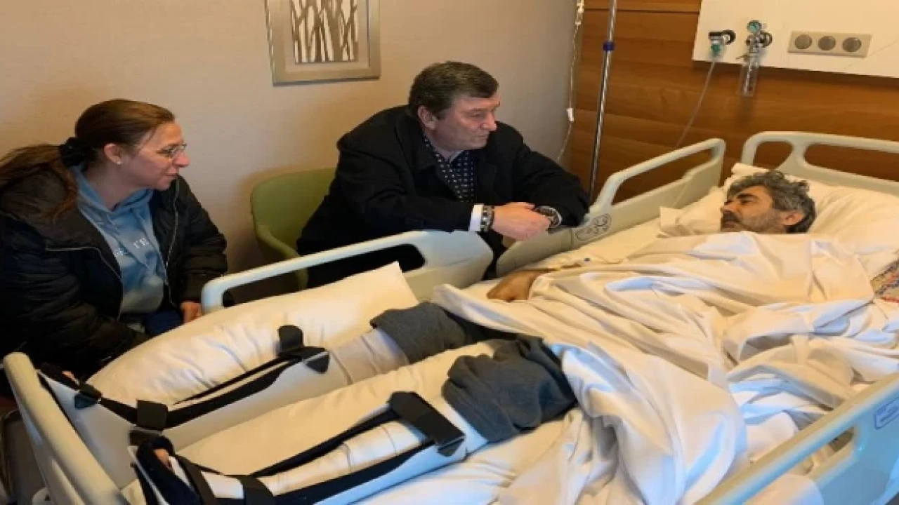 TSYD Genel Başkanı Oğuz Tongsir ile Akreditasyon ve Organizasyon Müdiresi Birgül Pullukçu, depremde enkaz altından çıkarılan gazeteci Akın Bodur'u hastanede ziyaret etti.