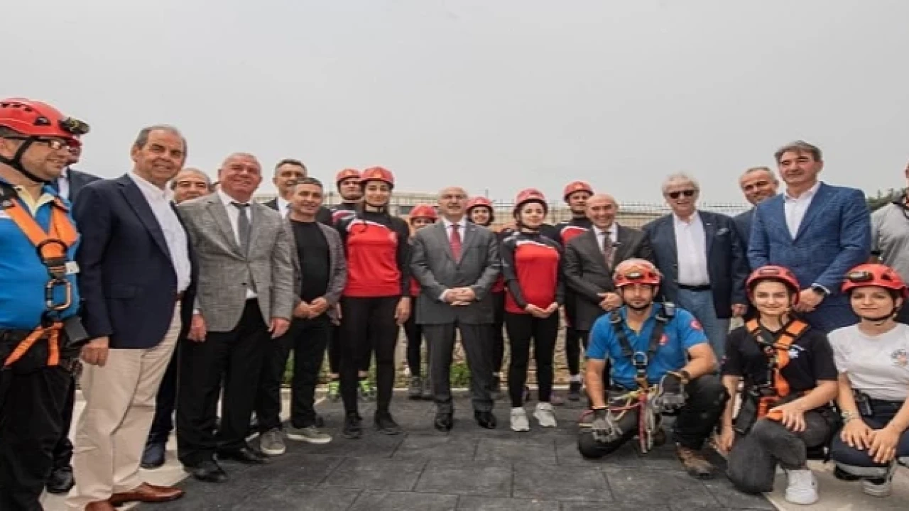 İzmir Büyükşehir Belediyesi itfaiye ekipleri, alanda tatbikat da yaptı. Ekipler, senaryo gereği bir araç yangınına müdahale etti.