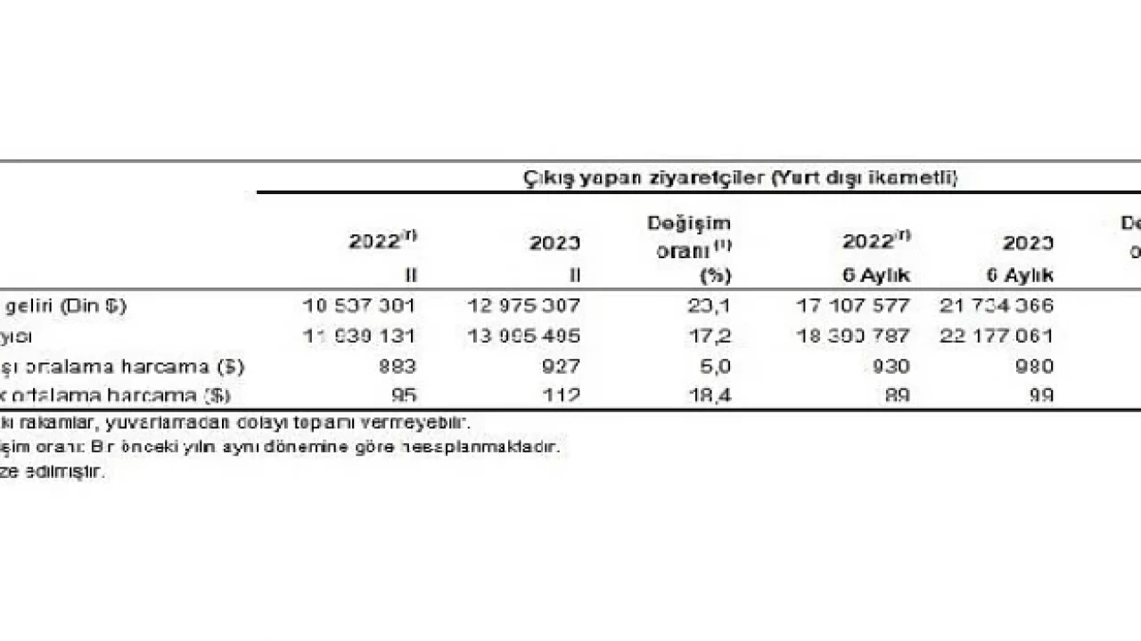 Ülkemizden çıkış yapan ziyaretçi sayısı 2023 yılı II. çeyreğinde bir önceki yılın aynı çeyreğine göre %17,2 artarak 13 milyon 995 bin 495 kişi oldu. Ziyaretçilerin %12'sini 1 milyon 676 bin 147 kişi ile yurt dışında ikamet eden vatandaşlar oluşturdu.