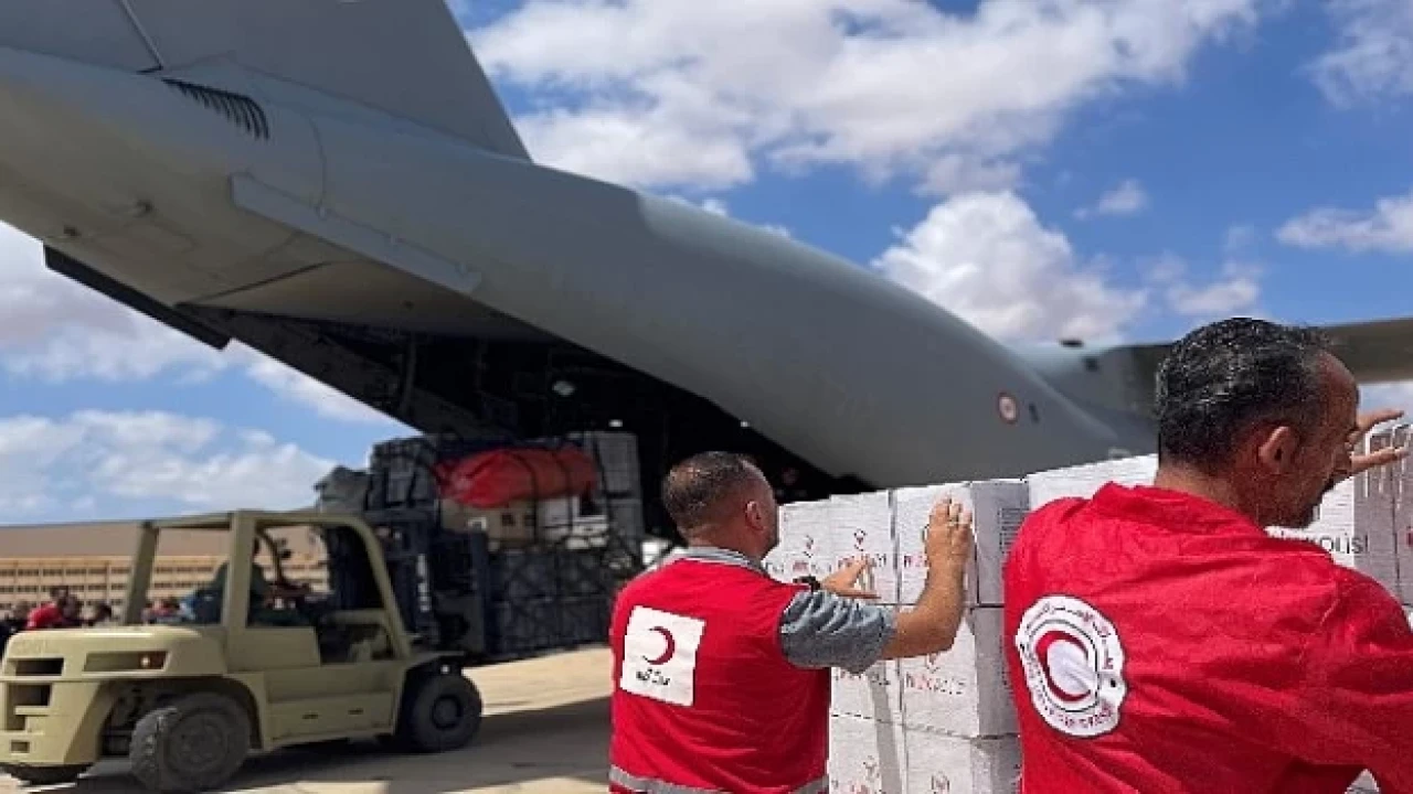 Türkiye, Libya’daki büyük sel felaketi sonrası uluslararası yardım çağrısında bulunan ülkeye yardım için seferber oldu. Belirlenen acil ihtiyaçlar doğrultusunda hazırlıklarını yapan Türk Kızılay da gece saatlerinde hazırladığı insani yardım malzemelerini günün ilk ışıklarıyla birlikte kargo uçağına yükledi. Askeri kargo uçağıyla Libya’ya ulaşan Türk Kızılay’ın 6 kişilik ekibi, selzedelere yönelik gerçekleştirilecek yardım faaliyetleri kapsamında ilk etapta çadır, battaniye, gıda ve hijyen kolisinden oluşan acil insani yardım malzemelerini bölgeye ulaştırdı.