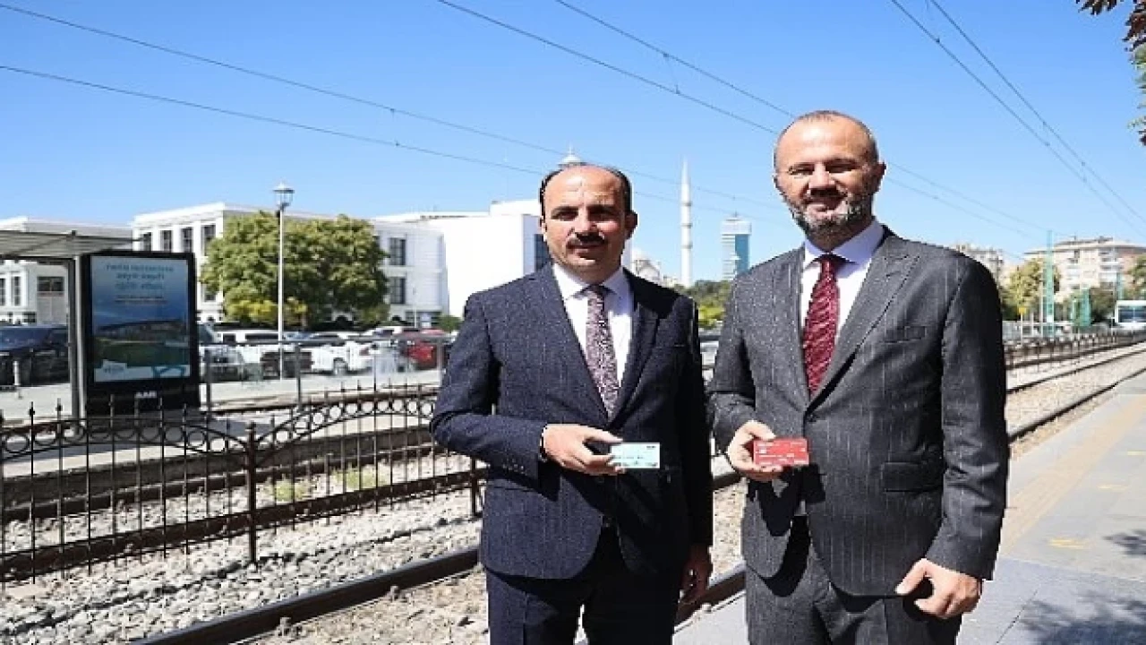 Başkan Altay, PTT Genel Müdürü Hakan Gülten ve Altyapı Yatırımları Genel Müdürü (AYGM) Dr. Yalçın Eyigün toplantının ardından Konya’da hayata geçirilen Türkiye Kart'ı kullanarak birlikte tramvaya bindi.
