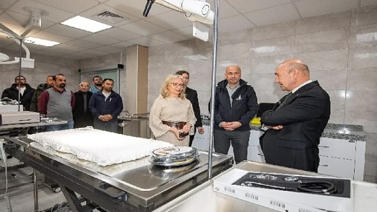 Açılış öncesi hastanedeki son hazırlıkları yerinde inceleyen İzmir Büyükşehir Belediye Başkanı Tunç Soyer, Genel Sekreter Yardımcısı Şükran Nurlu’dan bilgi aldı. Başkan Tunç Soyer, “Çok ciddi bir yatırımla, sadece İzmir’in değil Türkiye’nin en büyük hastanesini hizmete açacağız. Olağanüstü yüksek standartta hastane ekipmanı ile donatıldı. Röntgen, ultrason, ameliyathane, kuvöz gibi her türlü eksiğin tamamlandığı bir hastaneyi kente kazandırıyoruz. İzmirlilerin içi rahat etsin, sokak hayvanlarımıza 7/24 hizmet verecek olağanüstü donanımlı teknik ekibimiz var. Son derece yüksek standartta hastanemiz var. Onları doyuracak sağlıklı lezzetli mamalarımız var. Burası dört dörtlük bir tesis” dedi.