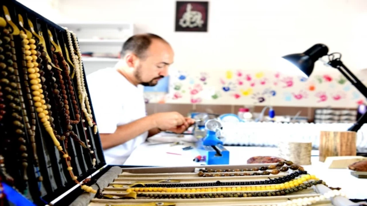 MALATYA (İGFA) - Usta eller marifetiyle yapılabilen tespihler, Sanat Sokağı’nda yer alan Tespih Atölyesi’nde Tespih Ustası Ensar Güler tarafından meraklılarına öğretiliyor. Hafta içi 08.00 - 17.00 saatleri arasında eğitim çalışmalarının yapıldığı tespih atölyesine her yaş grubundan kursiyerler katılım sağlıyor.