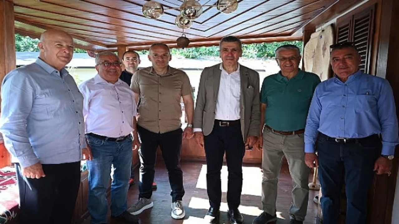 Vali Yardımcısı Sezgin, Kemer Belediyesi Kültür Evi anı defterini imzaladıktan sonra Belediye Başkanı Topaloğlu ve beraberindeki heyetle hatıra fotoğrafı çektirdi.