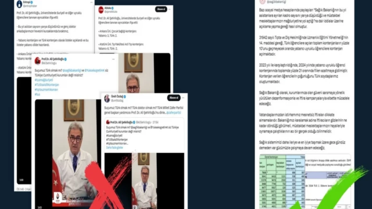 Bazı sosyal medya hesaplarından paylaşılan, "Yabancı uyruklu öğrencilere tanınan ayrıcalıklar açıklandı ve Türk öğrencilerin kontenjanları düşürüldü" iddiasına ilişkin yalanlama hem İletişim Başkanlığı'ndan, hem de Sağlık Bakanlığı'ndan geldi.
