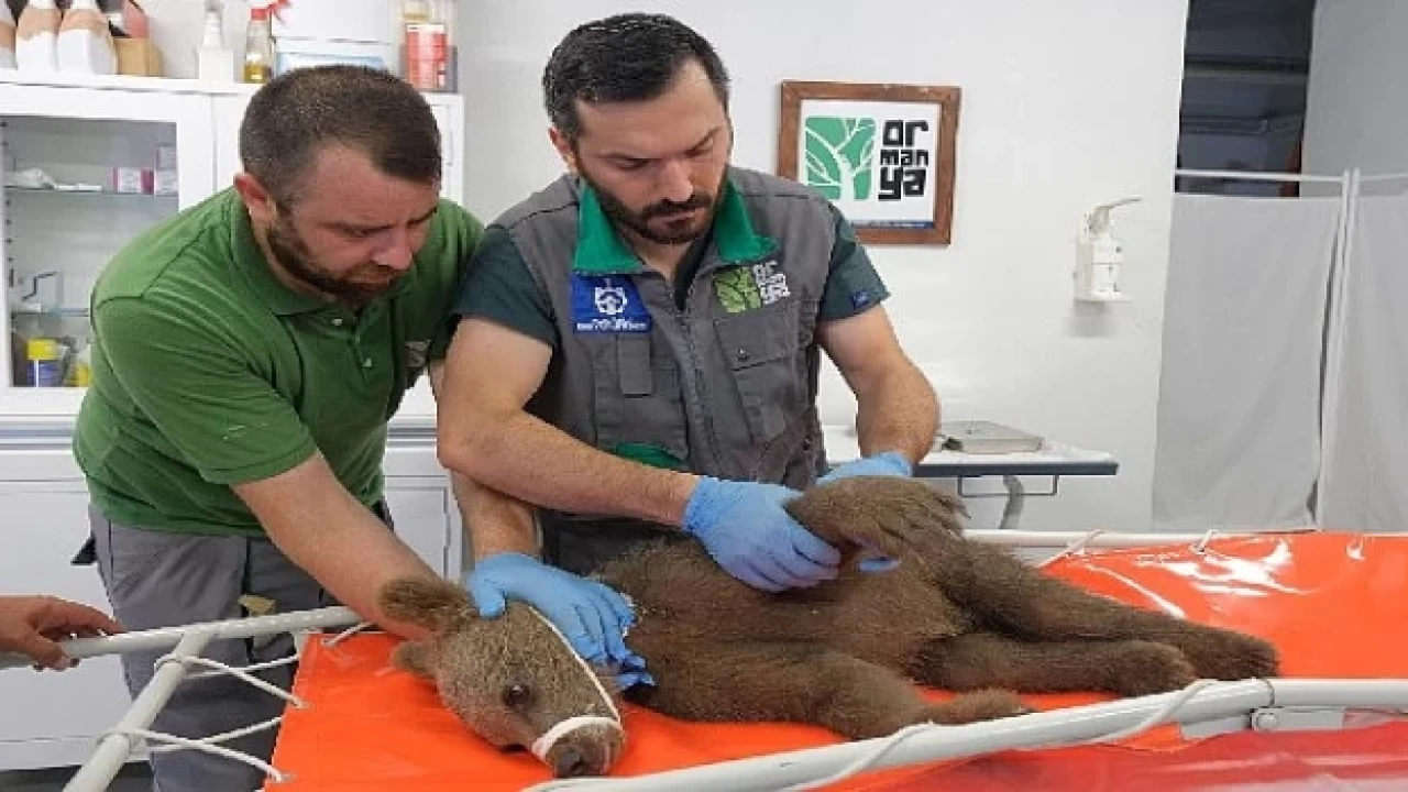 Sakarya Dokurcun yaylası mevkiinde vatandaşlar tarafından yaralı olarak bulunan yavru ayı, Doğa Koruma ve Milli Parklar ekipleri tarafından Ormanya’ya getirildi. Veteriner hekimler, 5 aylık olduğu tespit edilen boz ayıya hemen müdahale etti.  Travma geçirdiği anlaşılan boz ayının yapılan ilk kontrolünde ön ayaklarında yoğun bir hematom tablosu görüldüğü ve röntgen sonuçlarında da boyun omurunda zedelenme olduğu tespit edildi. Ormanya’da gördüğü tedavi sonrasında yaşama tutunan yavru boz ayı, tamamen sağlığına kavuşmasının ardından doğal yaşam alanına geri bırakılacak.