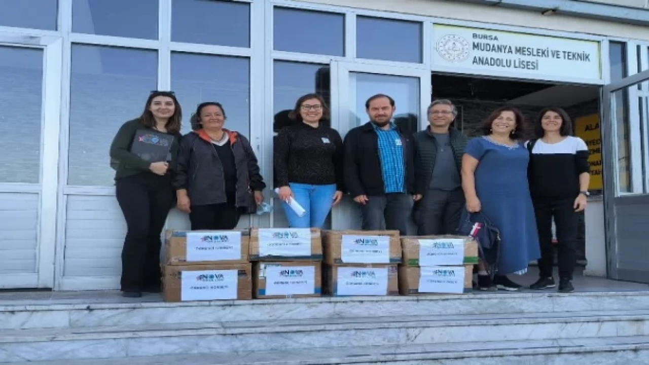 Bursa'da Nova Okulları bünyesindeki Anadolu ve Fen Lisesi gençleri, Türkiye Yardım Sevenler Derneği (TYSD) Mudanya Şubesi iş birliğinde ilçedeki üç liseye 8'er koli akademik gelişim destek kaynaklarını teslim etti.