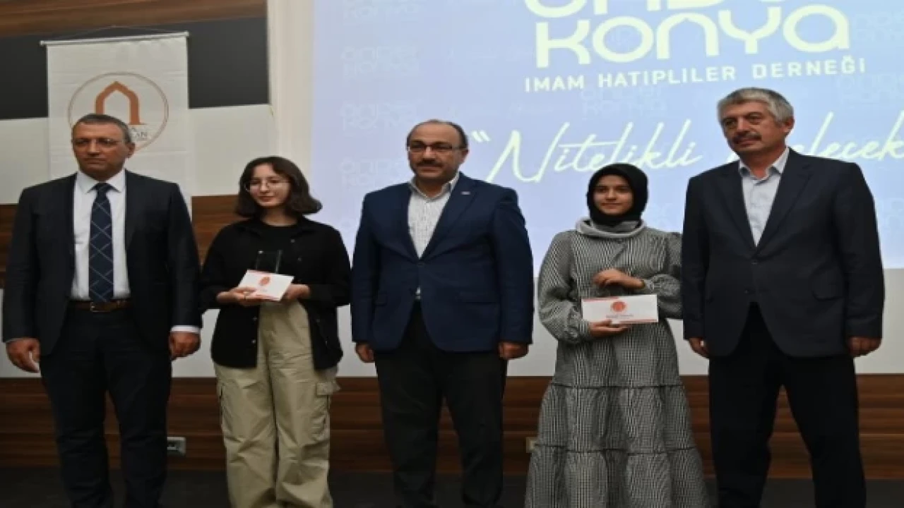 KONYA (İGFA) - Önder Konya İmam Hatipliler Derneği tarafından YKS ve LGS’de ilk 1000’e giren öğrencilere yönelik olarak Mustafa Büyükkaplan Hafız Anadolu İmam Hatip Lisesi’nde ödül töreni gerçekleştirildi. Programda ilk 1000’e giren 18 öğrenciye ödülleri takdim edildi.