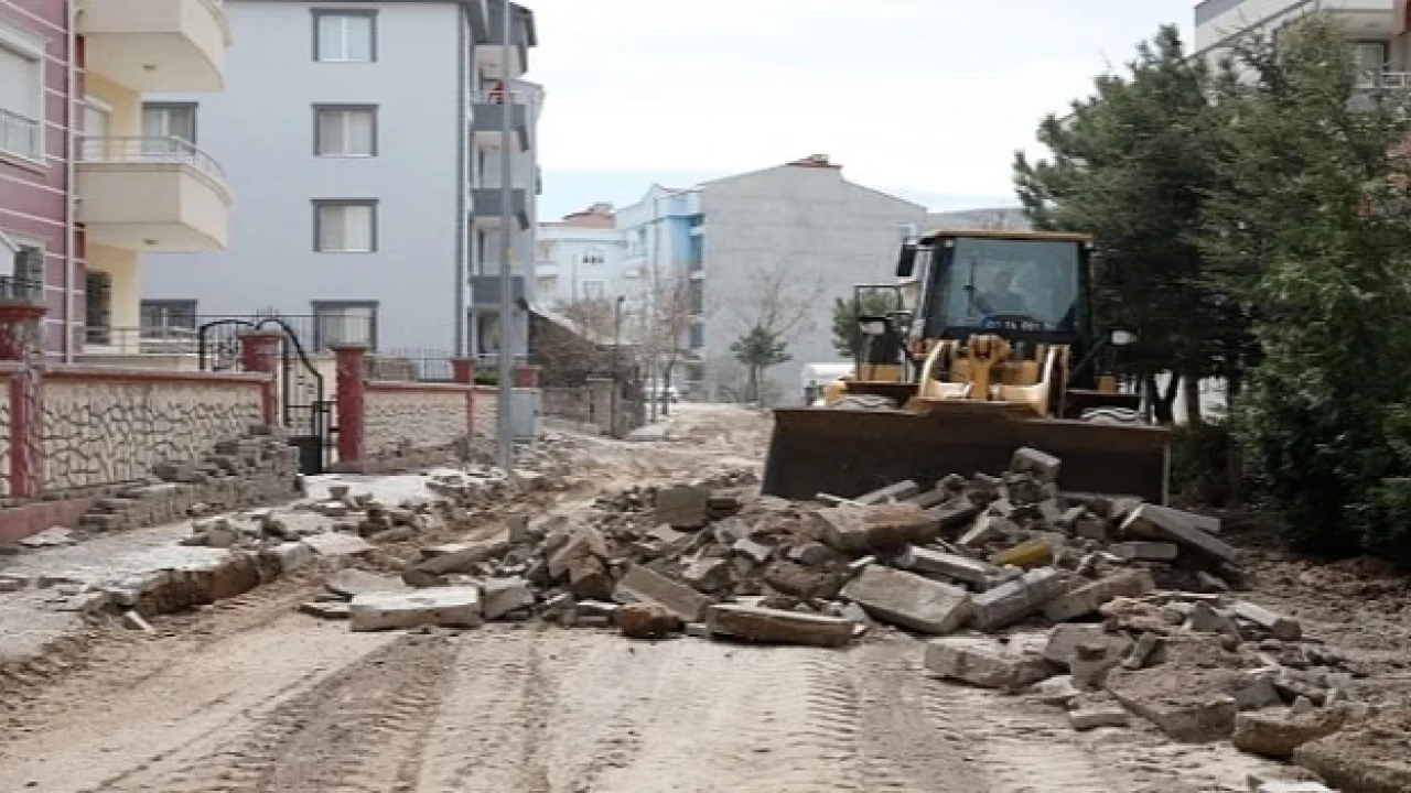 Sabah saatlerinde iş makineleri tarafından sökümüne başlanılan sokaktaki yollar ve yaya kaldırımları kısa süre içerisinde yenilenecek.