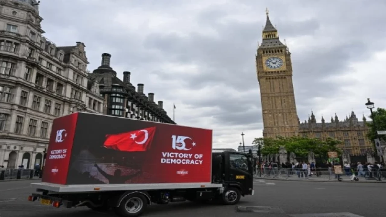 Londra'da Bakanlıklar, devlet kurumları, parlamento ile tarihî ve turistik yapıların bulunduğu bölgelerde dolaşan LED ekranlı araçlar, FETÖ'nün 15 Temmuz darbe girişimini ve Türk halkının buna karşı mücadelesini anlattı.